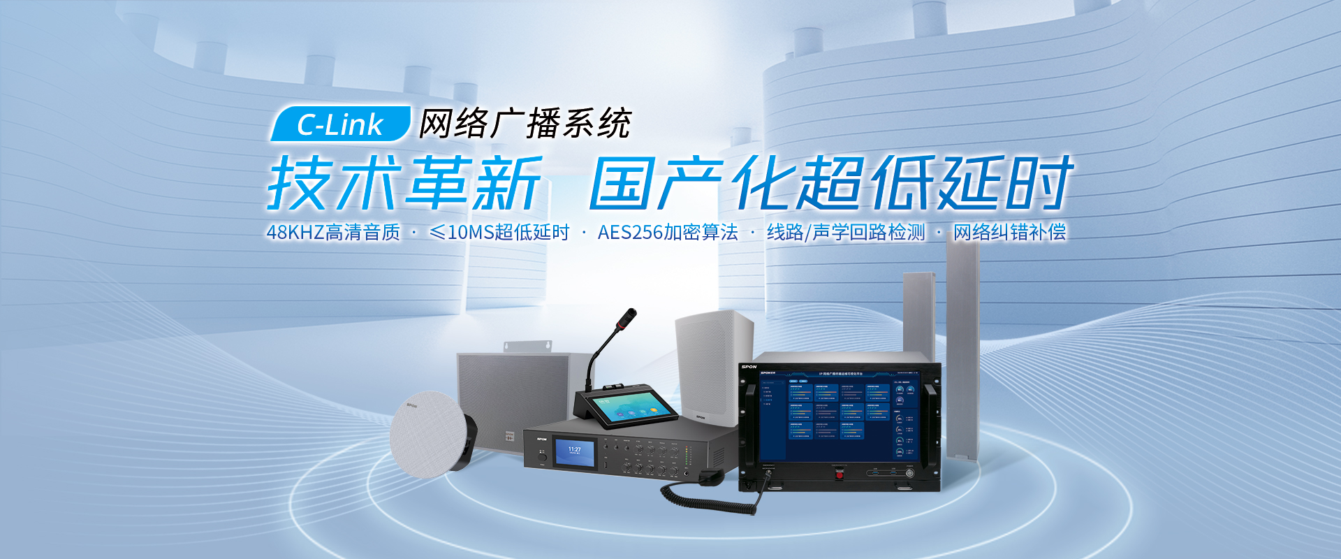 核心競爭力產(chǎn)品:IP公共廣播系統(tǒng)   IP會議擴聲系統(tǒng)   IP內(nèi)部通信對講系統(tǒng)   IP高清拾音系統(tǒng)